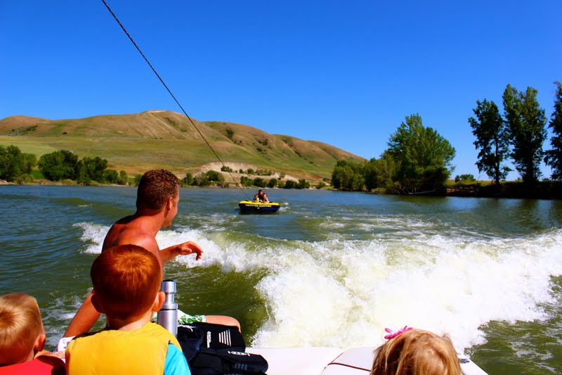 We went boating to Newton Dam with the Falslevs and the Jenkins. The kids loved swimming and especially the big tube.